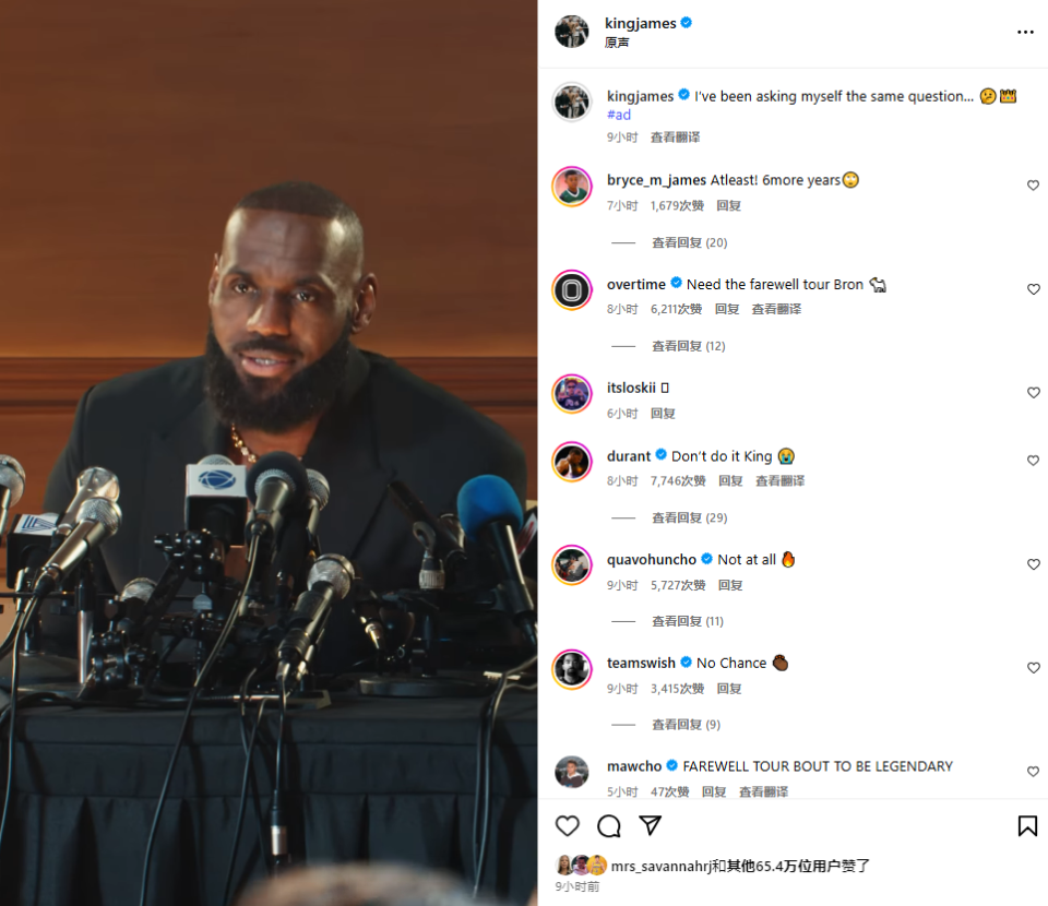 就在刚才,詹姆斯突然更新社交媒体