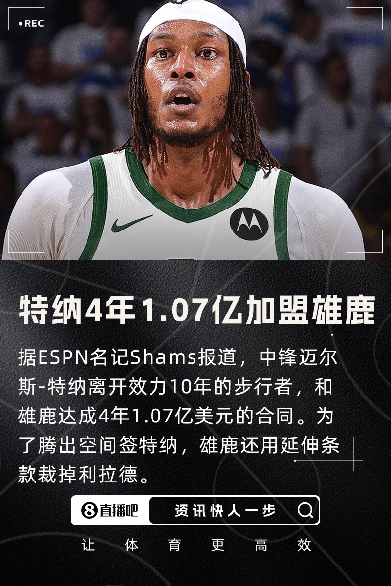 重磅转会😲迈尔斯-特纳4年1.07亿加盟雄鹿 结束10年步行者生涯