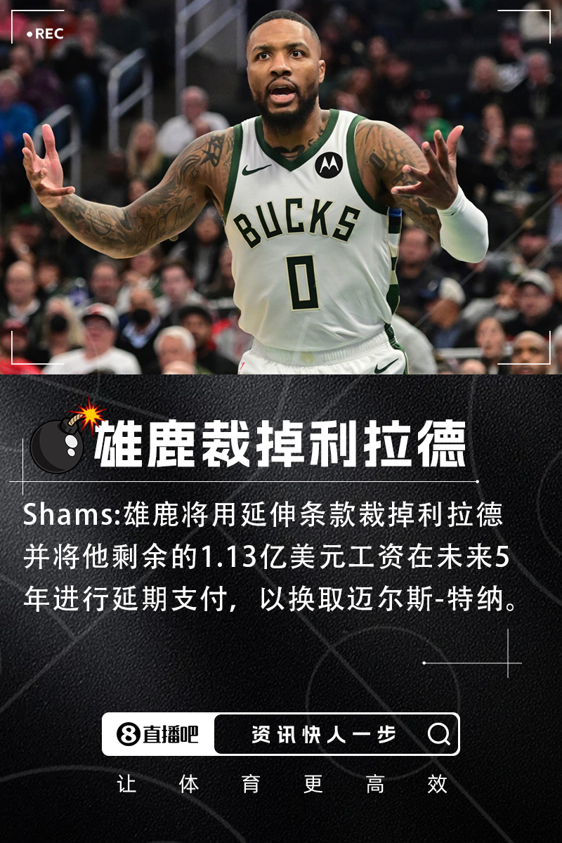💣炸裂!!Shams:雄鹿用延伸条款裁掉利拉德以签下特纳🤯