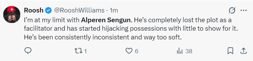 就连休媒都对申京失望了:对于申京我已经忍无可忍了。他作为组织者完全失去了分寸,开始胡乱侵占他人的球权,但没有一点的成果可言。他一贯表现不稳定,而且太过软弱无能。