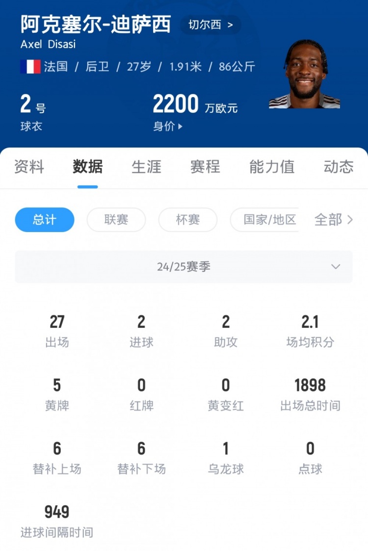 2023年夏天,迪萨西离开摩纳哥加盟切尔西,转会费4500万欧元。